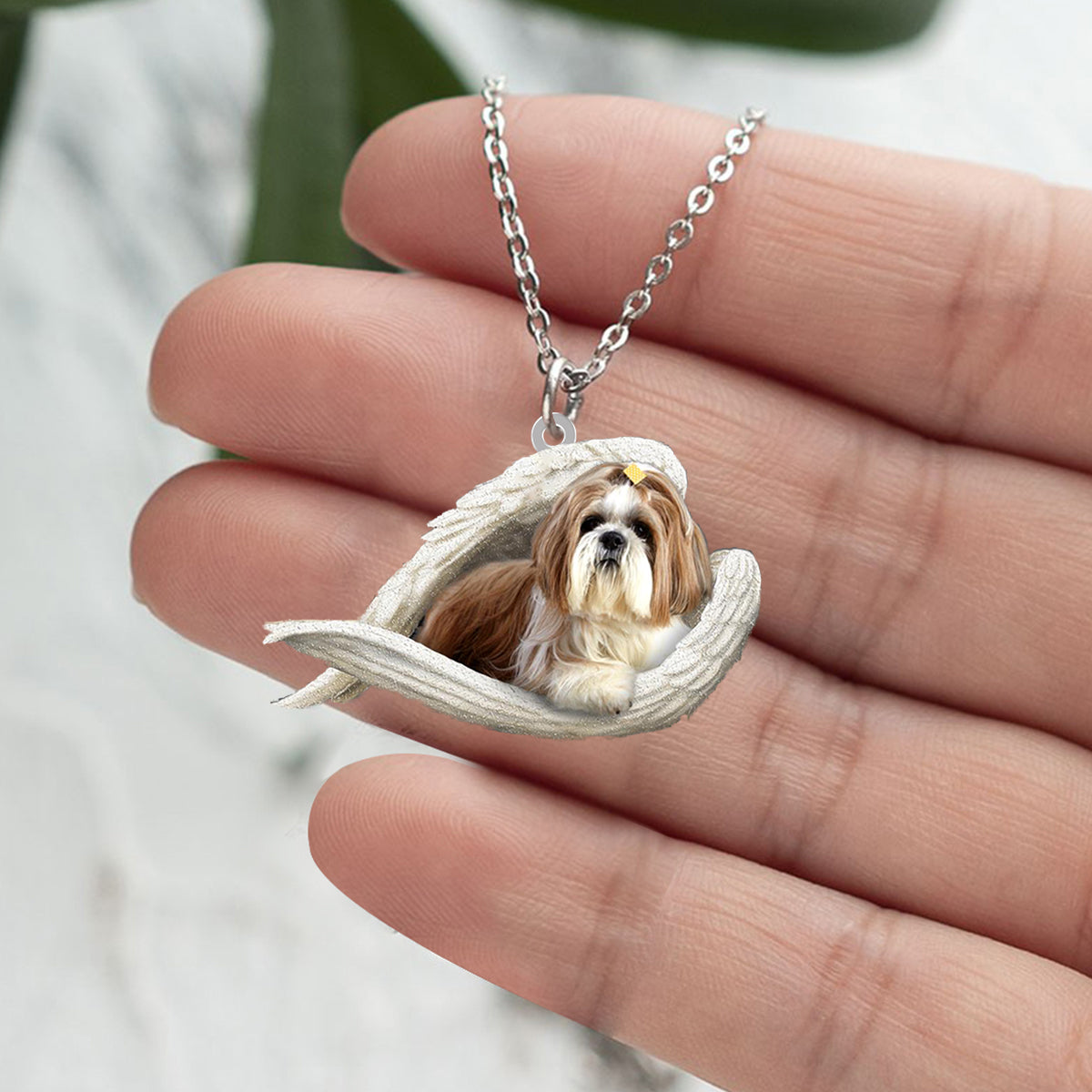 Shih tzu ..Sleeping Angel Stainless Steel Necklace